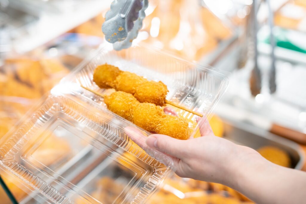 このように透明パックは、見た目の訴求力、売り場づくり、作業効率といった複数の理由から、惣菜販売において広く採用されているのです。